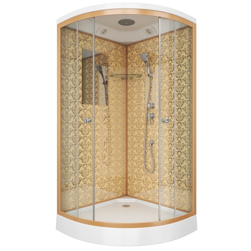 Душевая кабина Niagara Luxe NG-7701G (90x90х210) низкий поддон(15см),дверь раздвижная,стенки золото,3 места купить недорого в интернет-магазине «ГЕБОСАН»
