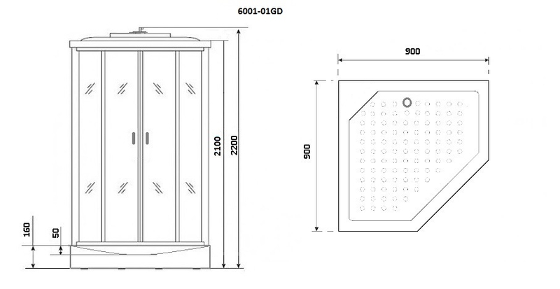 Габаритные размеры данной продукции 90 x 90 x 220 см позволяют использование в ванной комнате практически любого размера. Вам потребуется сделать предварительный замер остальных предметов ванной и подобрать нужное открытие двери душевой кабины, в данной модели ориентация двери универсальная.