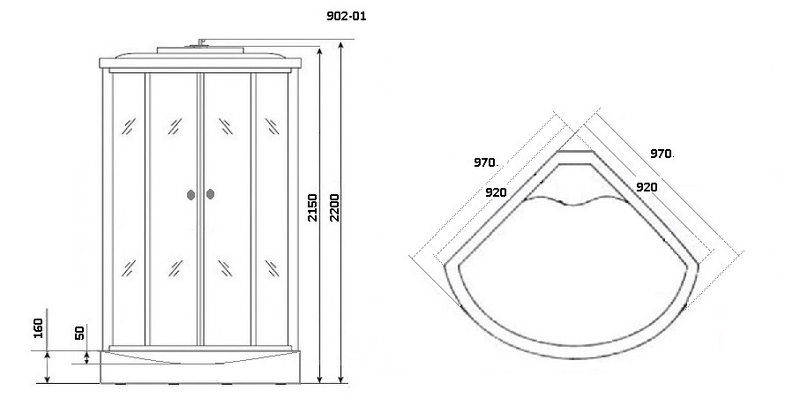 Габаритные размеры данной продукции 100 x 100 x 220 см позволяют использование в ванной комнате практически любого размера. Вам потребуется сделать предварительный замер остальных предметов ванной и подобрать нужное открытие двери душевой кабины, в данной модели ориентация двери универсальная.