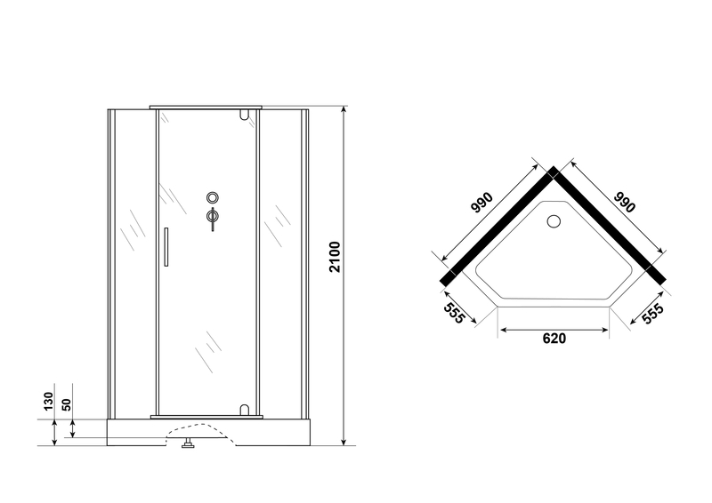 Габаритные размеры данной продукции 100 x 100 x 210 см позволяют использование в ванной комнате практически любого размера. Вам потребуется сделать предварительный замер остальных предметов ванной и подобрать нужное открытие двери душевой кабины, в данной модели ориентация двери универсальная.