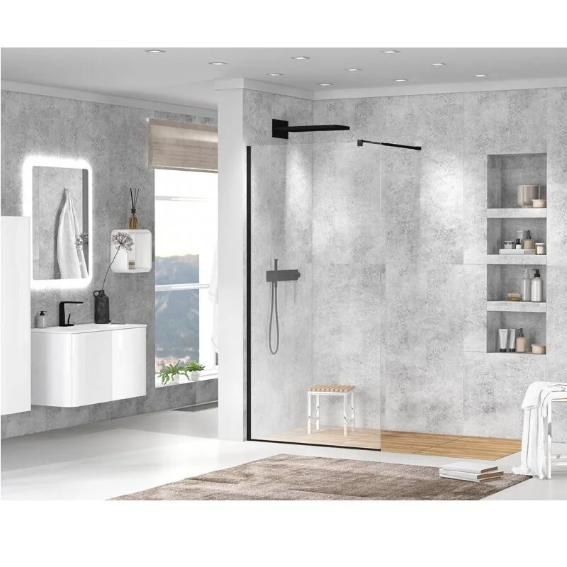 Душевая перегородка Cezares Liberta 100 см со свободным входом, стекло прозрачное, профиль черный, LIBERTA-L-1-100-120-C-NERO