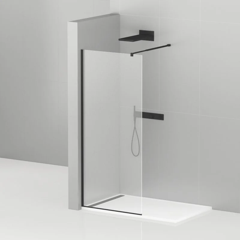 Душевая перегородка Cezares Liberta со свободным входом 110 см, стекло прозрачное, профиль черный, Liberta-L-1-110-C-Nero