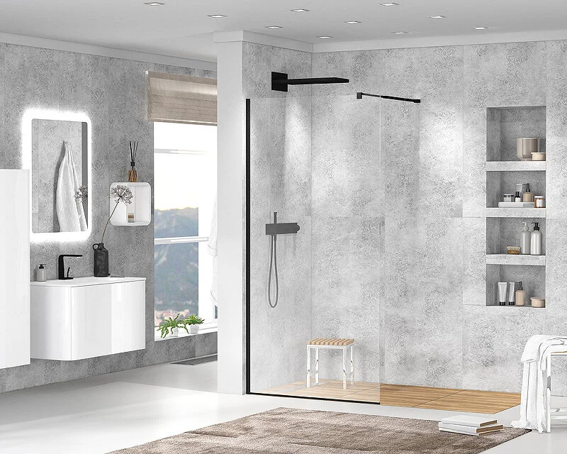 Душевая перегородка со свободным входом Cezares Liberta-L-1-70-C-NERO, 70 см, стекло прозрачное, профиль черный матовый