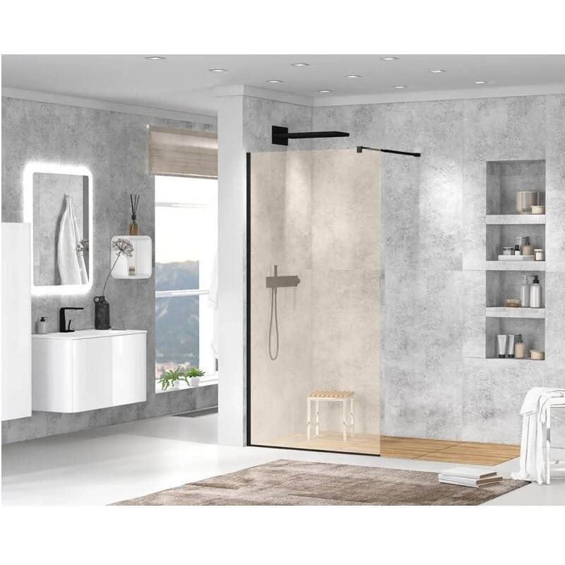 Душевая перегородка Cezares Liberta 90 см со свободным входом, стекло бронза, профиль черный, LIBERTA-L-1-90-120-BR-NERO
