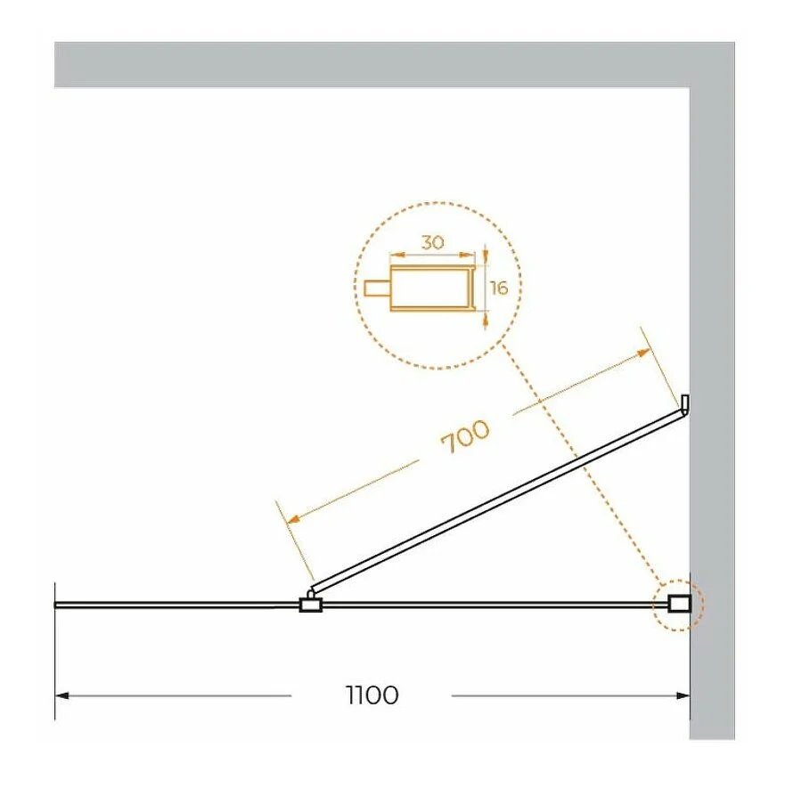 Душевая перегородка со свободным входом Cezares Liberta-L-1-TB-110-C-Cr, 110 см, стекло прозрачное, профиль черный матовый