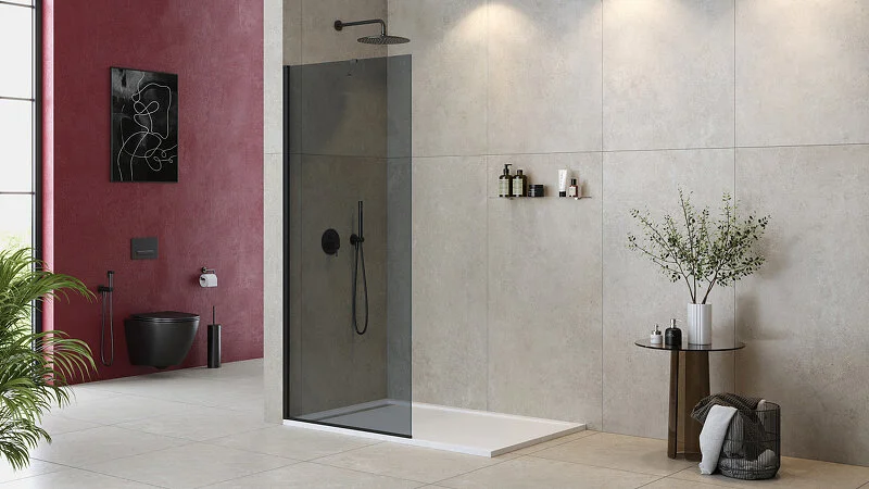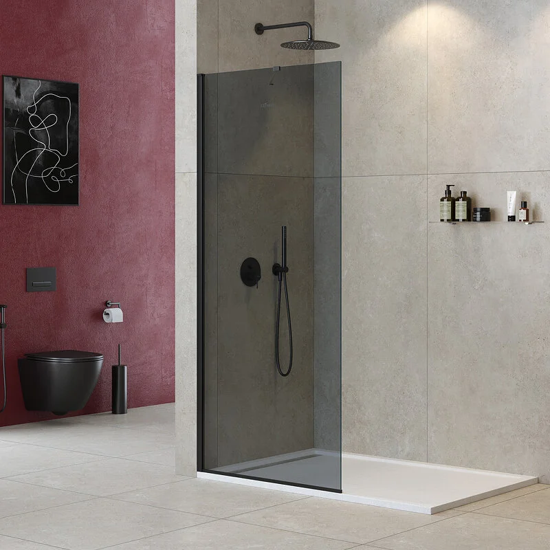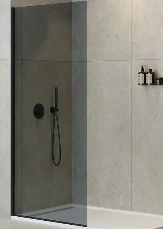 Душевая перегородка со свободным входом Cezares Liberta-L-1-TB-110-GR-NERO, 110 см, стекло графит, профиль черный матовый