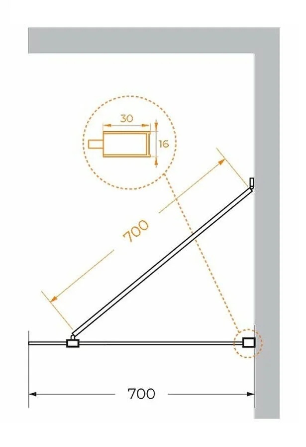 Душевая перегородка со свободным входом Cezares Liberta-L-1-TB-70-C-NERO, 70 см, стекло прозрачное, профиль черный матовый