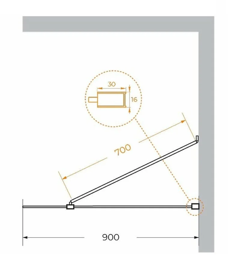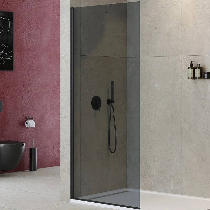 Душевая перегородка со свободным входом Cezares Liberta-L-1-TB-90-GR-NERO, 90 см, стекло графит, профиль черный матовый