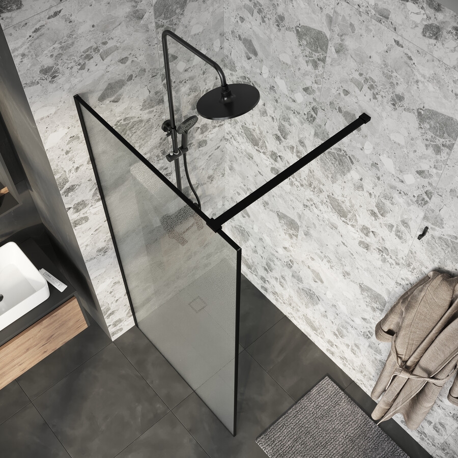 Душевая перегородка Niagara Nova NG-781-90BLACK (90х200) черный матовый,стекло эффект битого стекла,1 место купить по низкой цене в интернет-магазине «ГЕБОСАН»