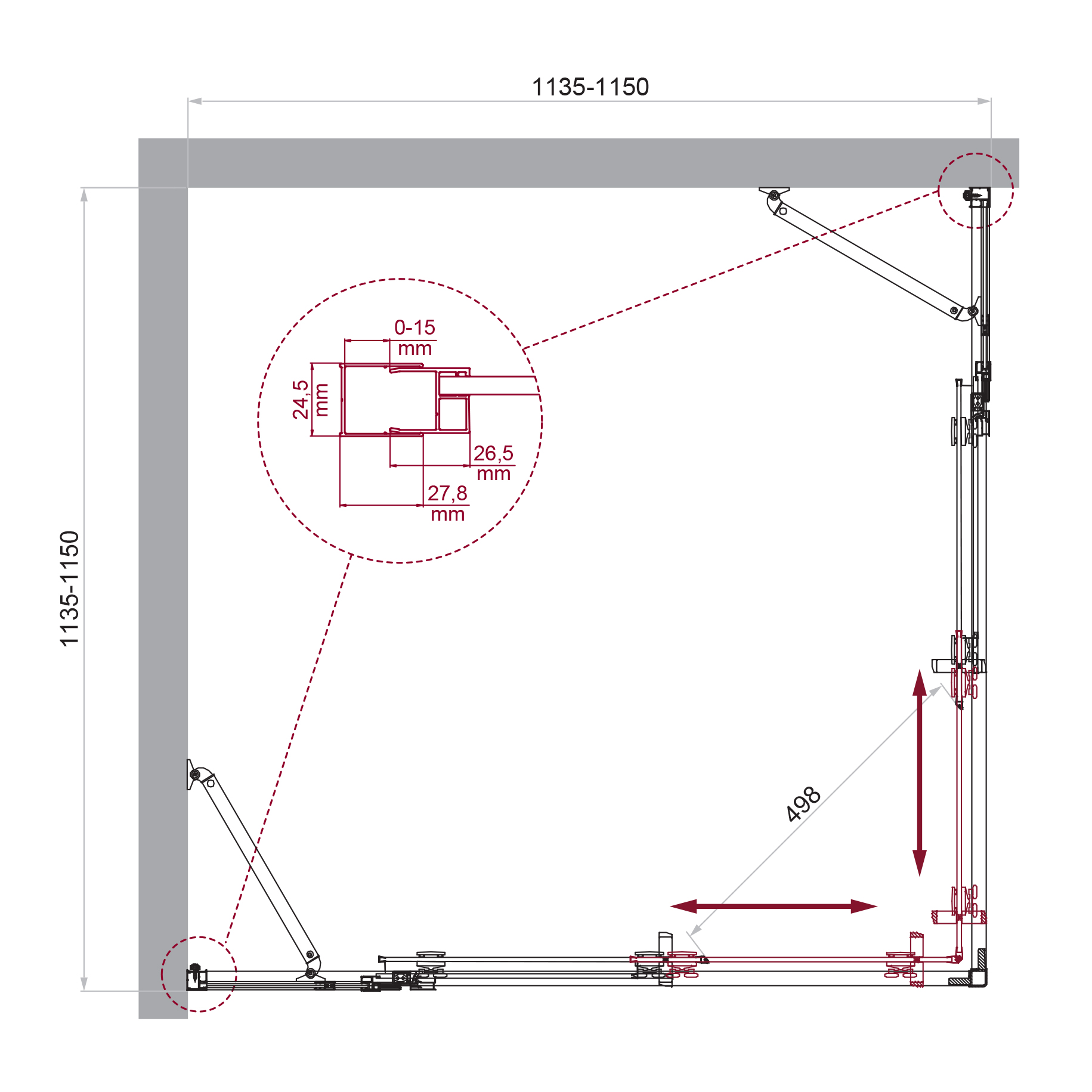 Душевой уголок BelBagno LUCE-A-22-90+25-C-Cr 115x115, хром