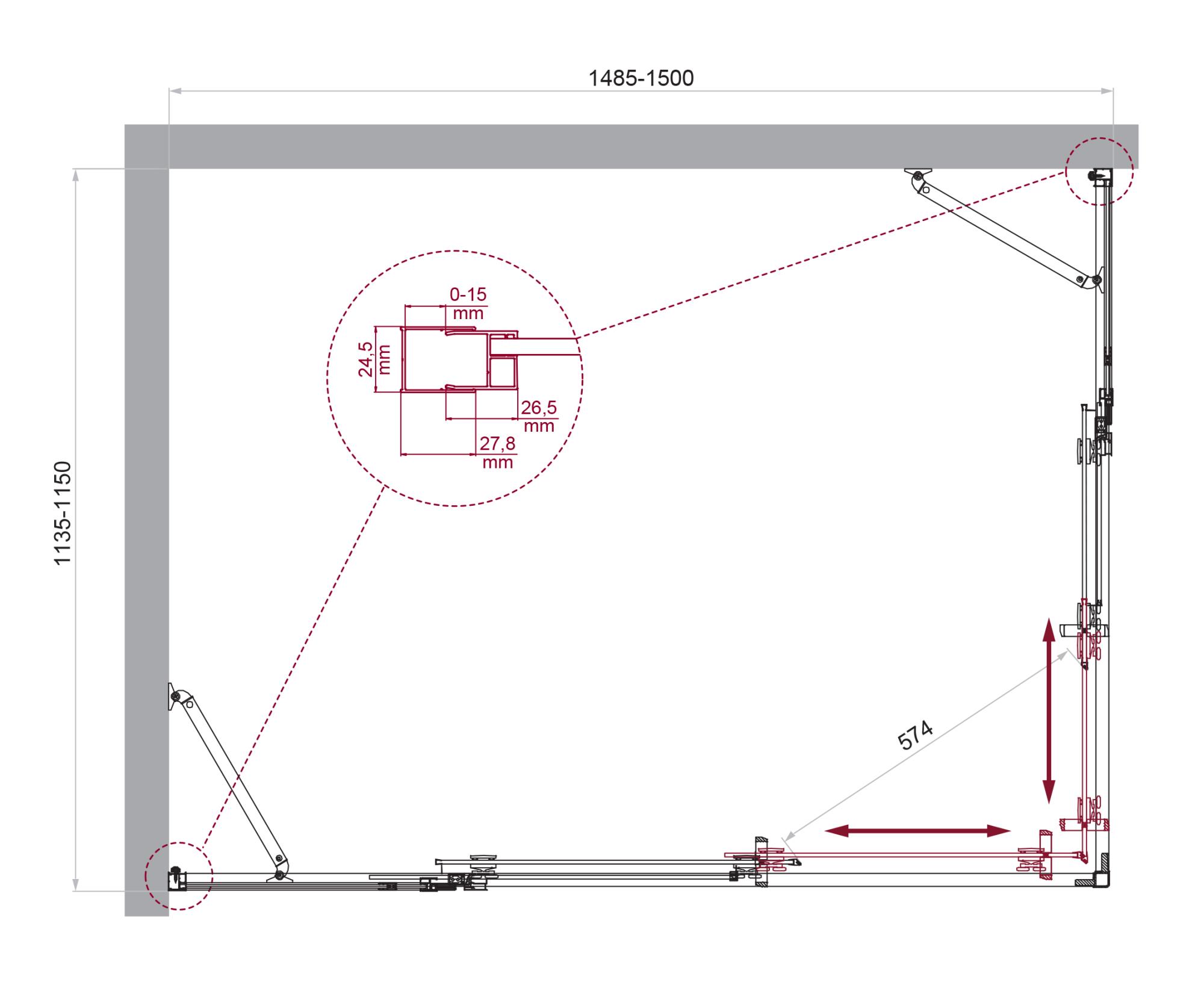 Душевой уголок BelBagno LUCE-AH-22-150/115-C-Cr 150x115, хром