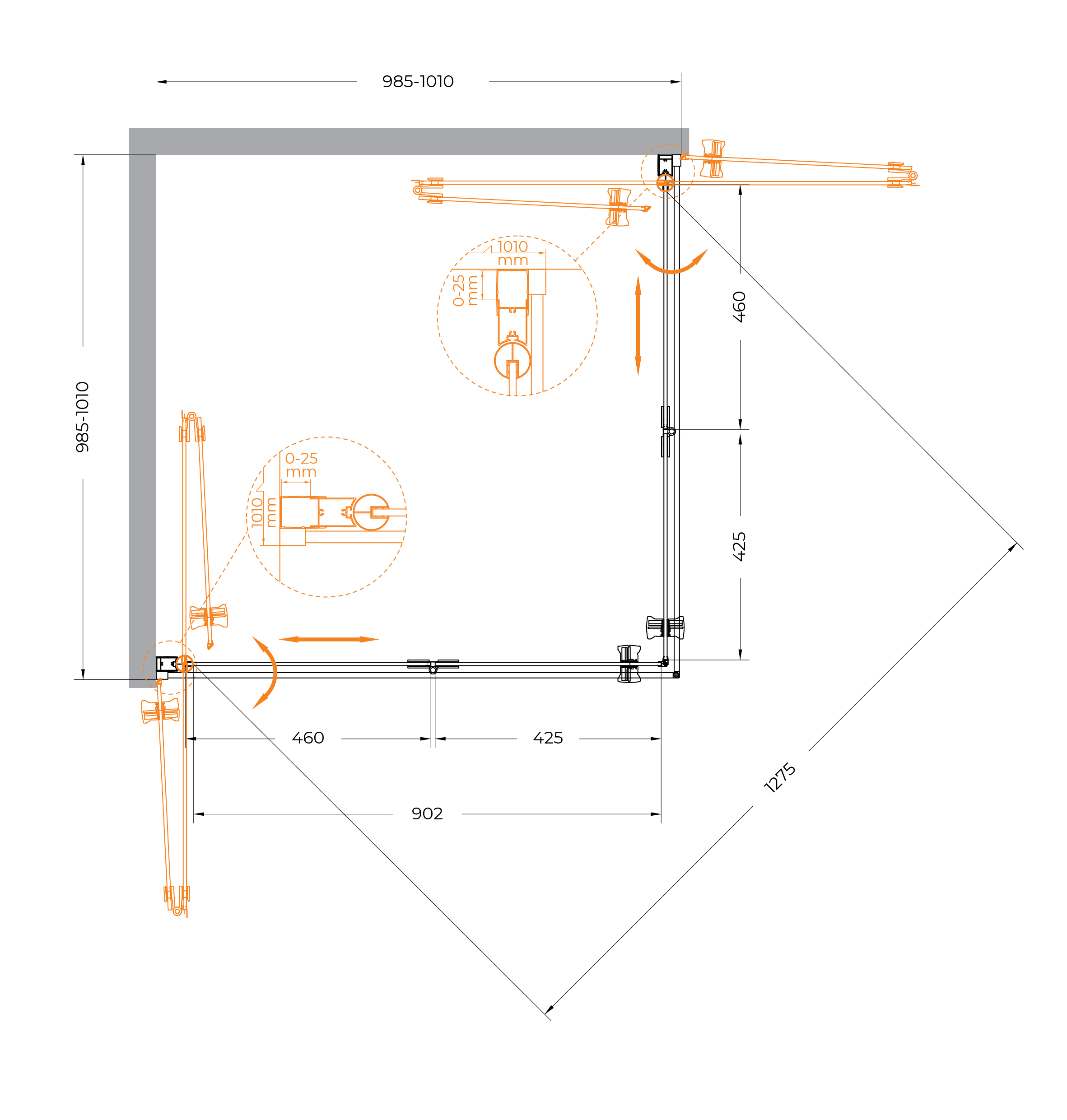 Регулировка ширины: предусмотрена за счет боковых профилей