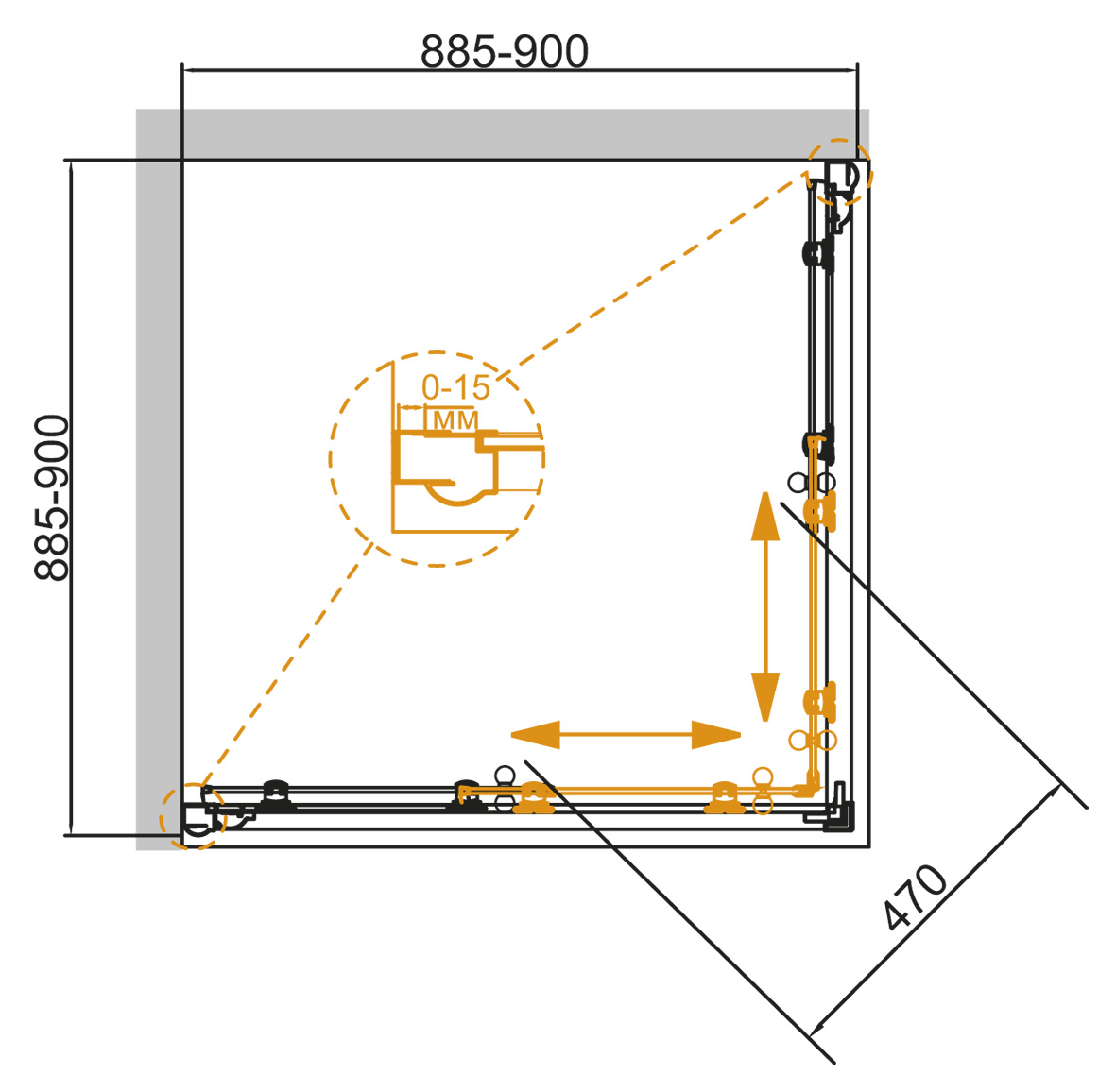 Стекло: 6 мм; СP (прозрачное c матовым узором) или PP (матовое с прозрачным узором);