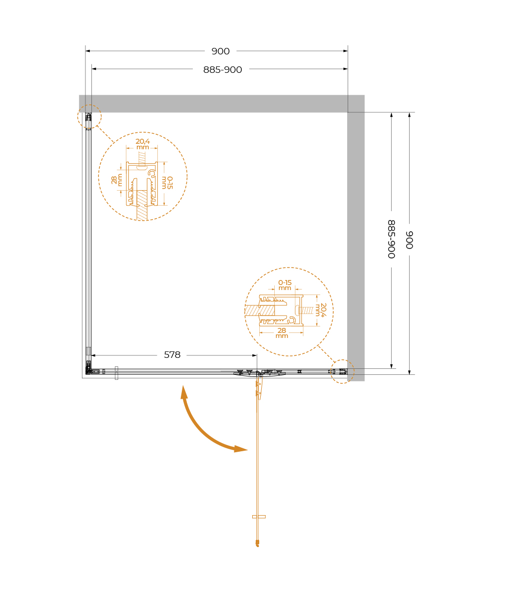 Монтаж: пристенный в угол