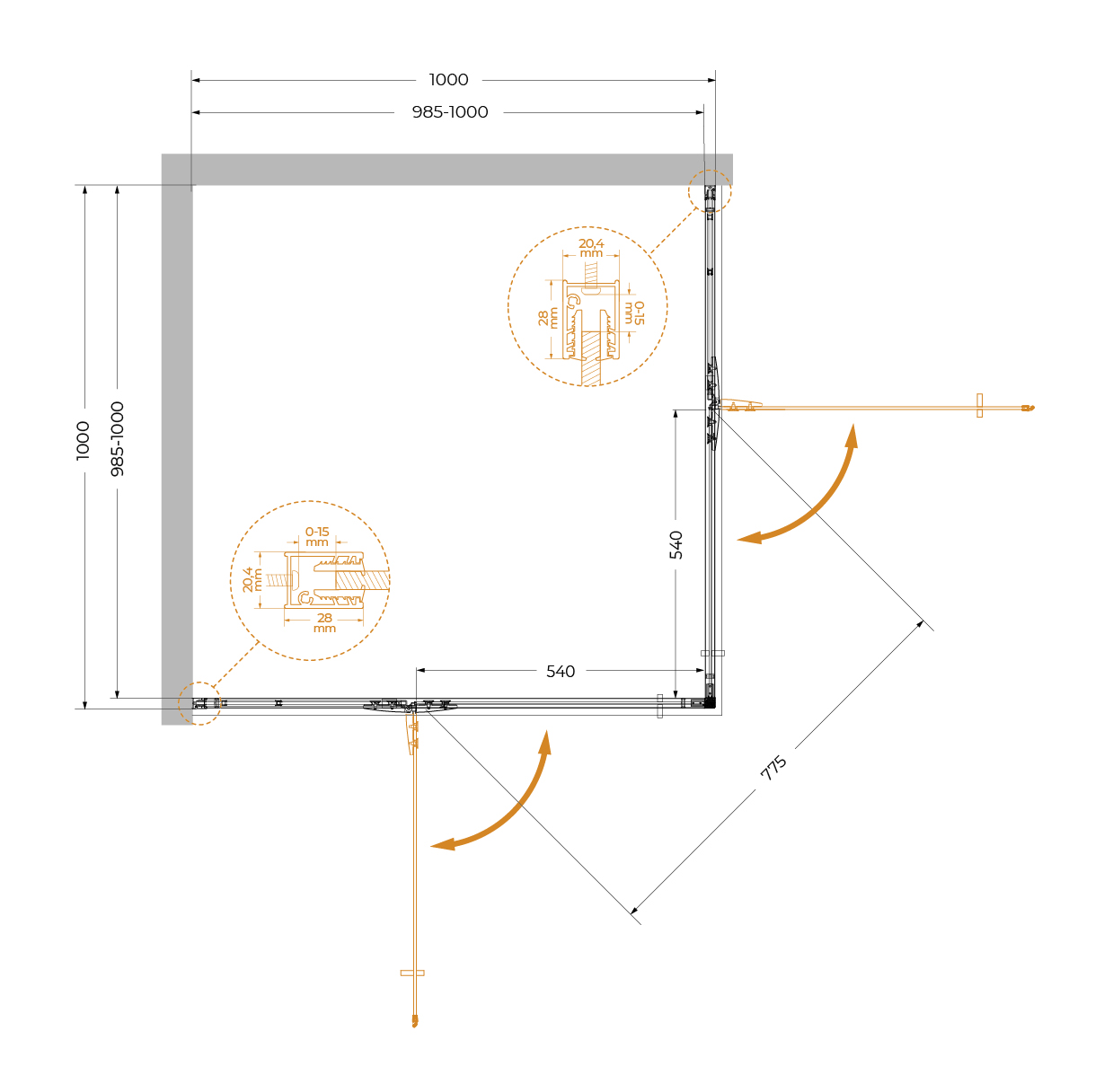 Монтаж: пристенный в угол