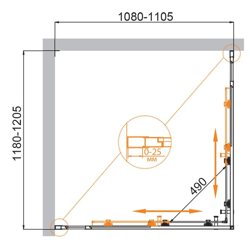 Регулировка ширины: предусмотрена за счет боковых профилей