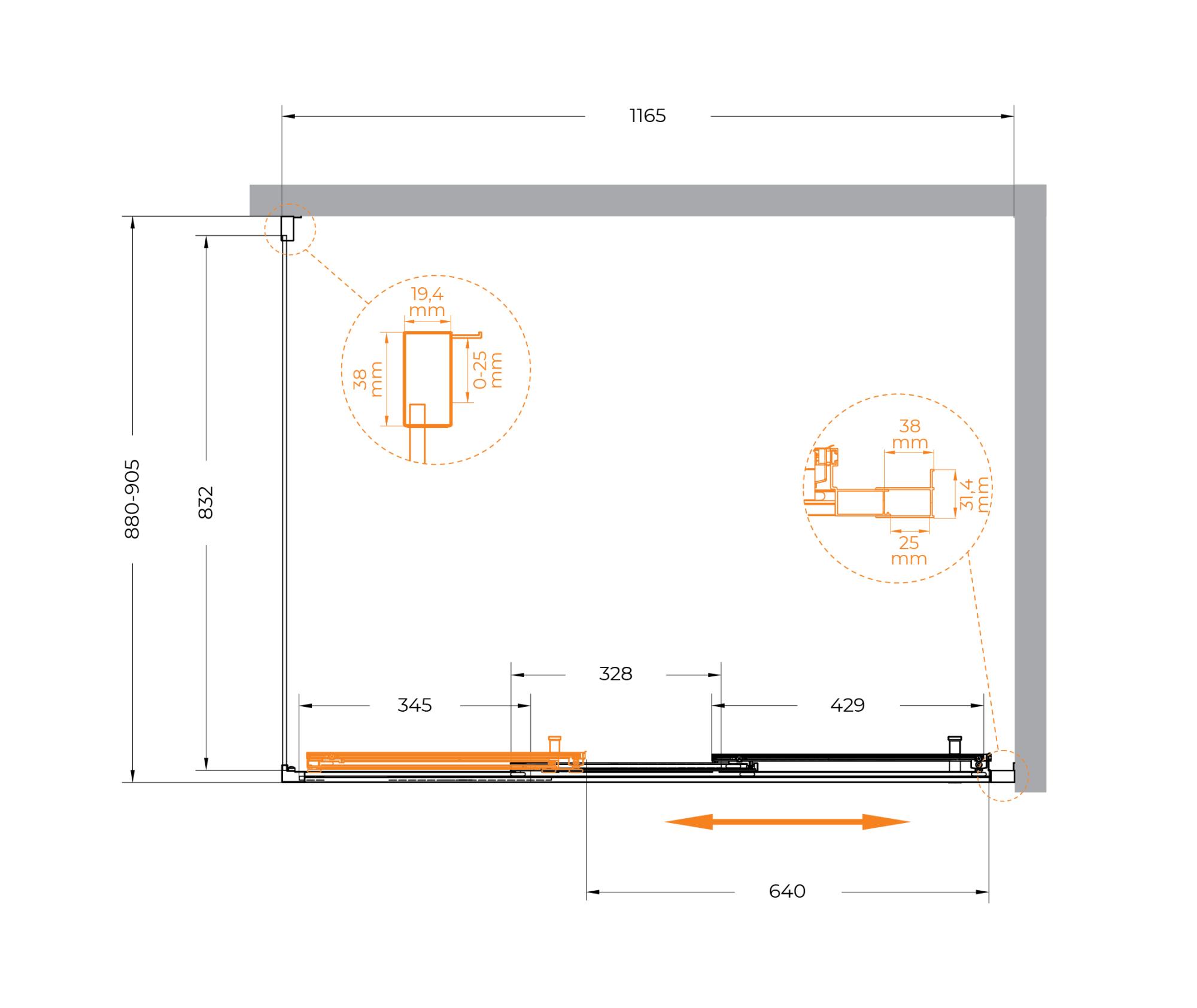 Регулировка ширины: предусмотрена за счет боковых профилей