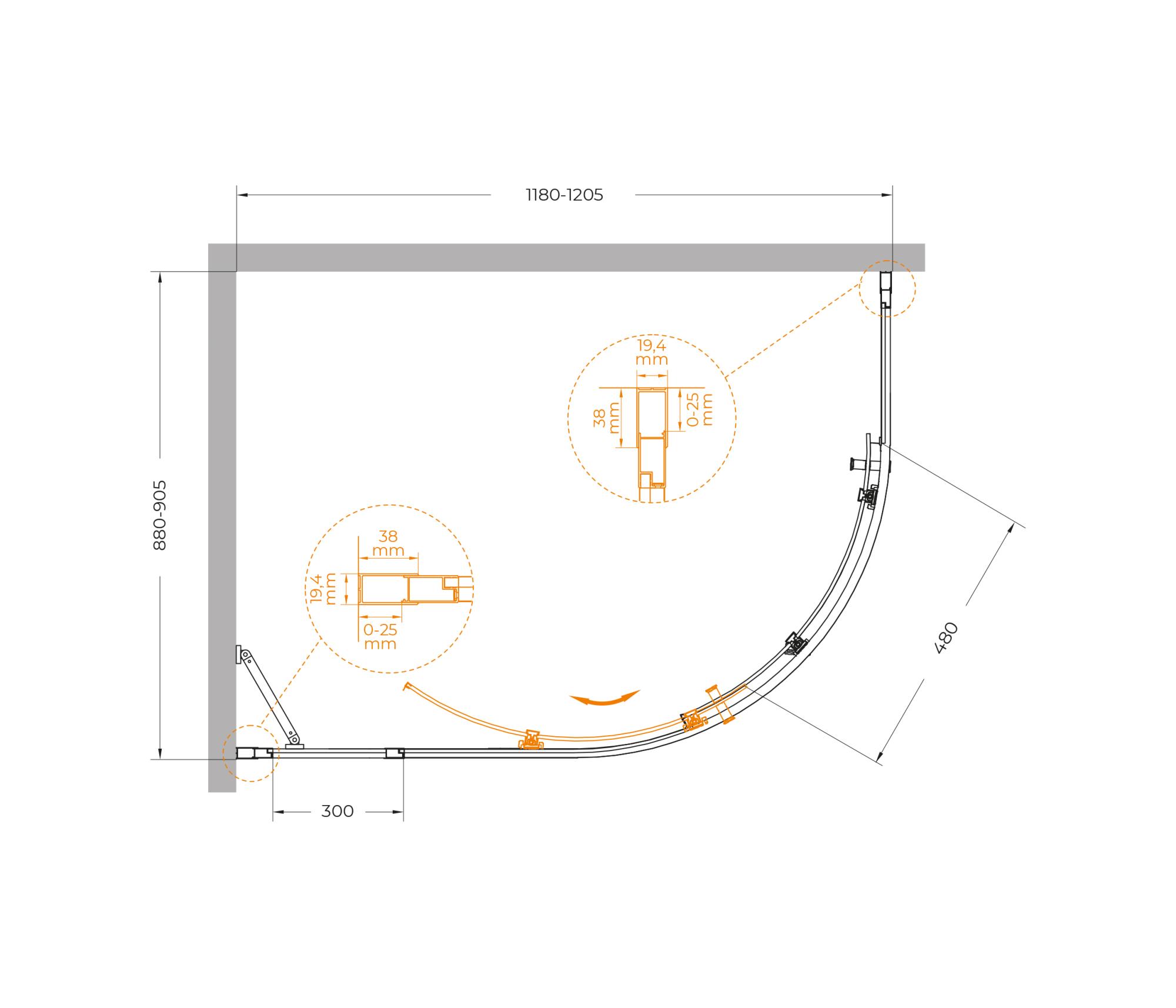 Регулировка ширины: предусмотрена за счет боковых профилей