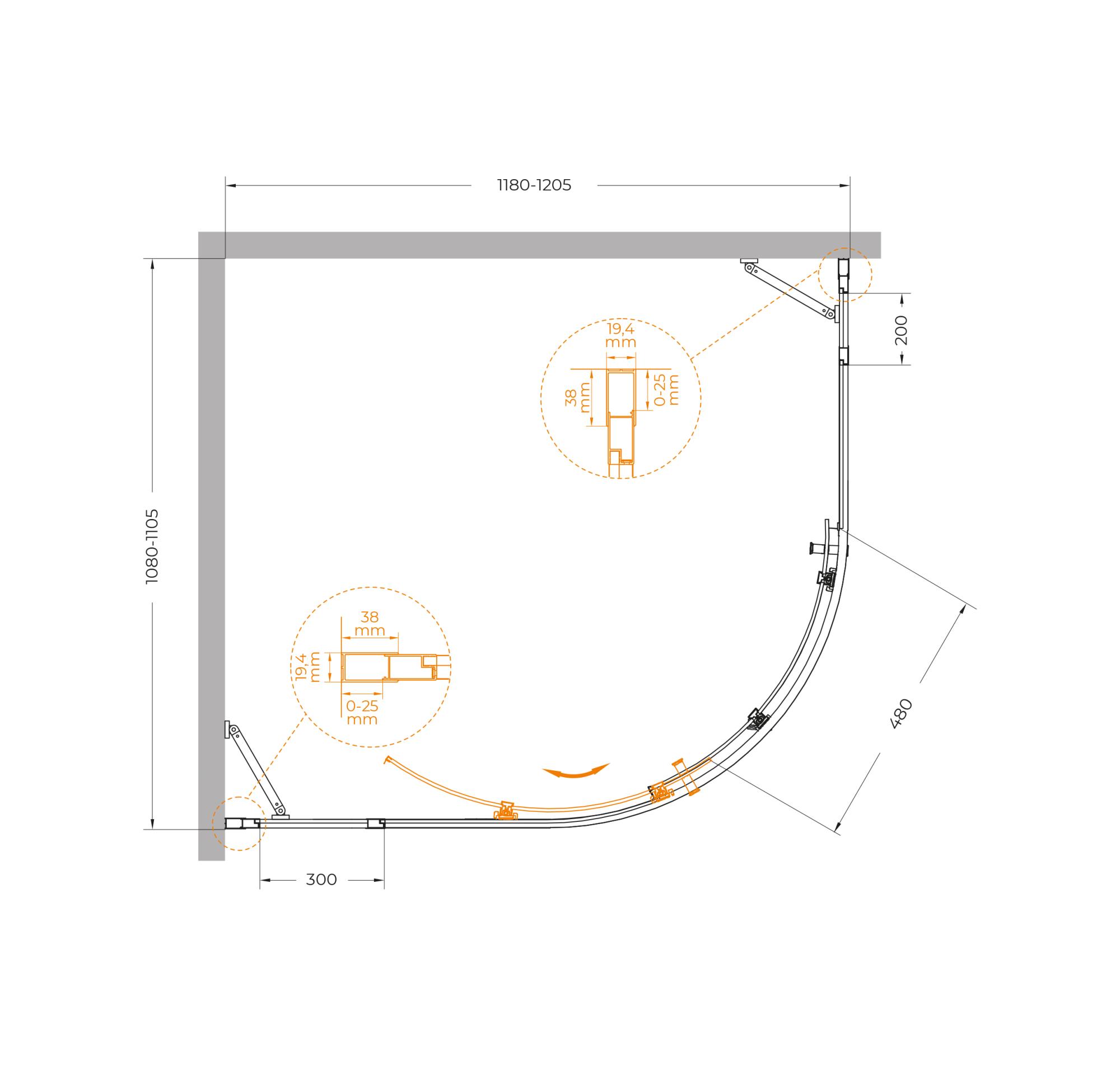 Регулировка ширины: предусмотрена за счет боковых профилей