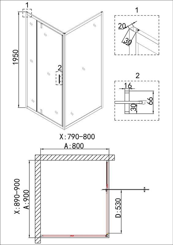 Душевое ограждение Niagara Nova NG-43-9AG-A80G (90х80х195) прямоугольник,золото,двери распашные,стекло прозрачное,2 места купить по низкой цене в интернет-магазине «ГЕБОСАН»