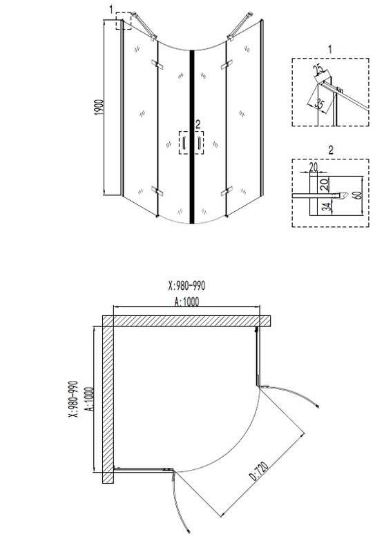 Душевое ограждение Niagara Nova NG-6616-08 (100х100х190) четверть круга,хром,двери распашные,стекло прозрачное,1 место купить по низкой цене в интернет-магазине «ГЕБОСАН»