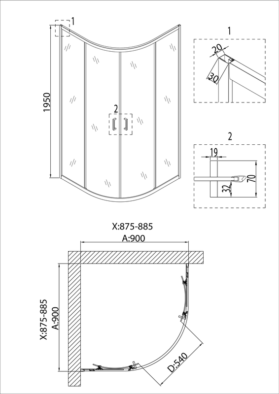 Душевое ограждение Niagara Nova NG-6806-08ВLACK (90х90х195) четверть круга,черный,двери раздвижные,стекло прозрачное,1 место купить по низкой цене в интернет-магазине «ГЕБОСАН»