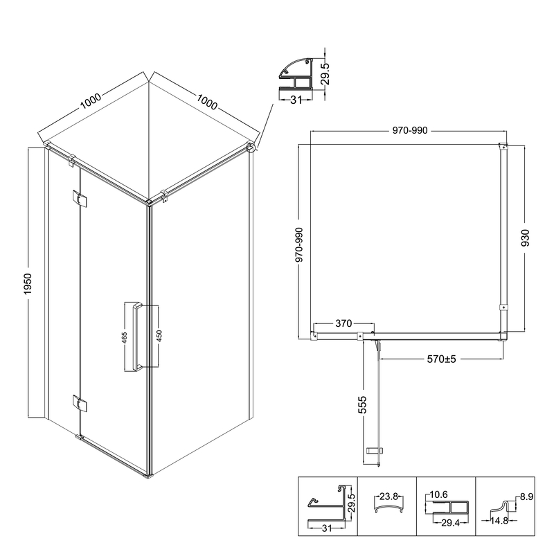 Душевое ограждение Niagara Nova NG-6832-34ВLACK (100х100х195) квадрат,черный матовый,двери распашные,стекло прозрачное,1 место купить по низкой цене в интернет-магазине «ГЕБОСАН»