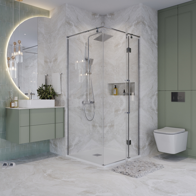 Душевое ограждение Niagara Nova NG-6631-34 (90х90х195) квадрат,хром,дверь распашная,стекло прозрачное,1 место купить по низкой цене в интернет-магазине «ГЕБОСАН»