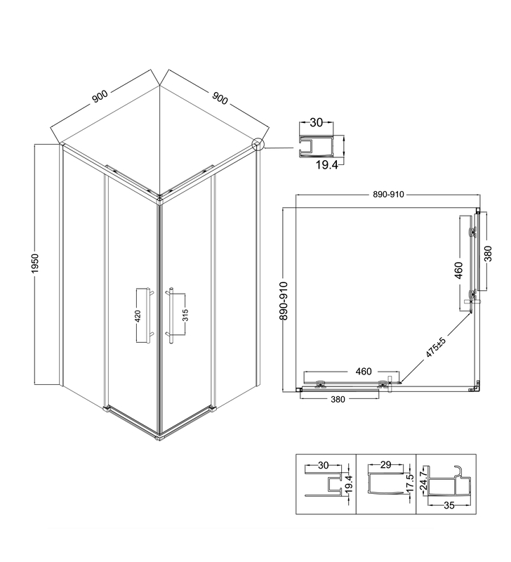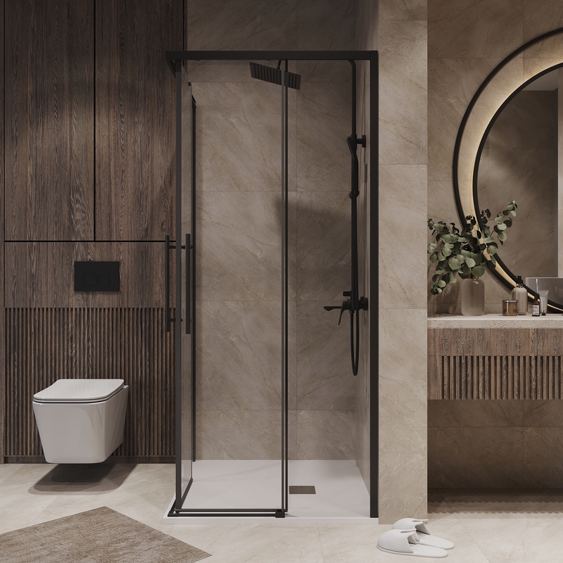 Душевое ограждение Niagara Nova NG-6829-34ВLACK (90х90х195) квадрат,черный матовый,двери раздвижные,стекло прозрачное,1 место купить по низкой цене в интернет-магазине «ГЕБОСАН»
