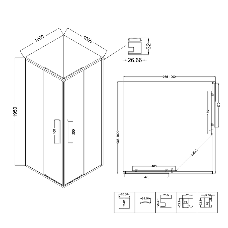 Душевое ограждение Niagara Nova NG-2824-34BLACK (100х100х195) квадрат,черный матовый,двери раздвижные,стекло тонированное,1 место купить по низкой цене в интернет-магазине «ГЕБОСАН»