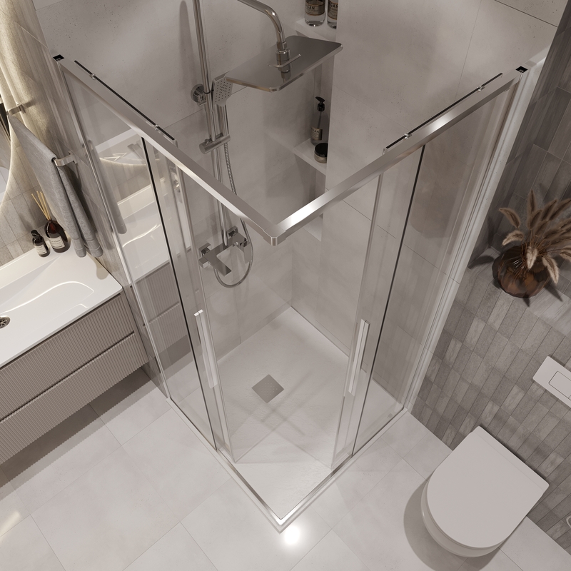 Душевое ограждение Niagara Nova NG-6623-34 (90х90х195) квадрат,двери раздвижные,хром,стекло прозрачное,1 место купить по низкой цене в интернет-магазине «ГЕБОСАН»