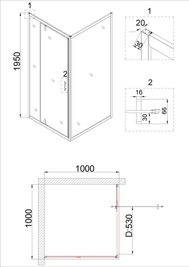 Душевое ограждение Niagara Nova NG-0200-08ВLACK (100х100х195) квадрат,черный,дверь распашная,стекло с рисунком,1 место купить по низкой цене в интернет-магазине «ГЕБОСАН»