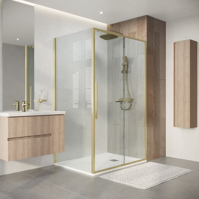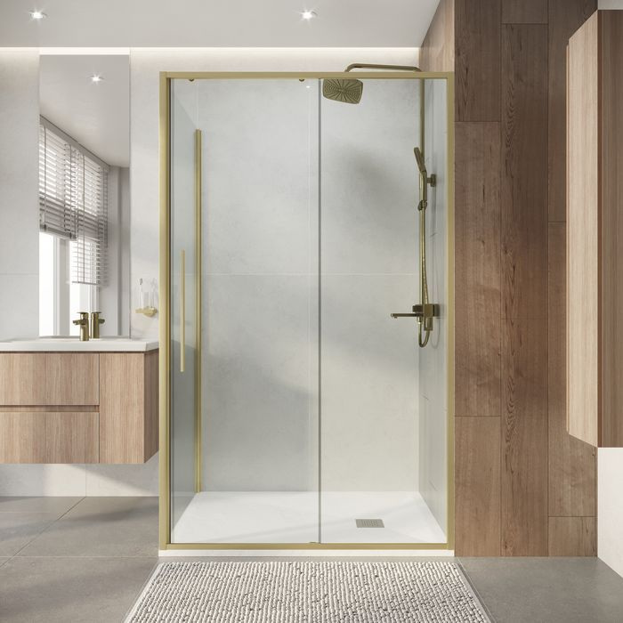 Душевое ограждение Niagara Nova NG-44-10ASG-A80SG-34 (100х80х195) прямоугольник,раздвижная,золото сатин,стекло прозрачное,2 места купить по низкой цене в интернет-магазине «ГЕБОСАН»