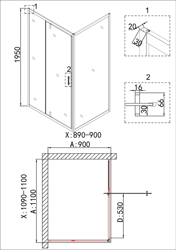 Душевое ограждение Niagara Nova NG-43-11AG-A90G (110х90х195) прямоугольник,золото,двери распашные,стекло прозрачное,2 места купить по низкой цене в интернет-магазине «ГЕБОСАН»