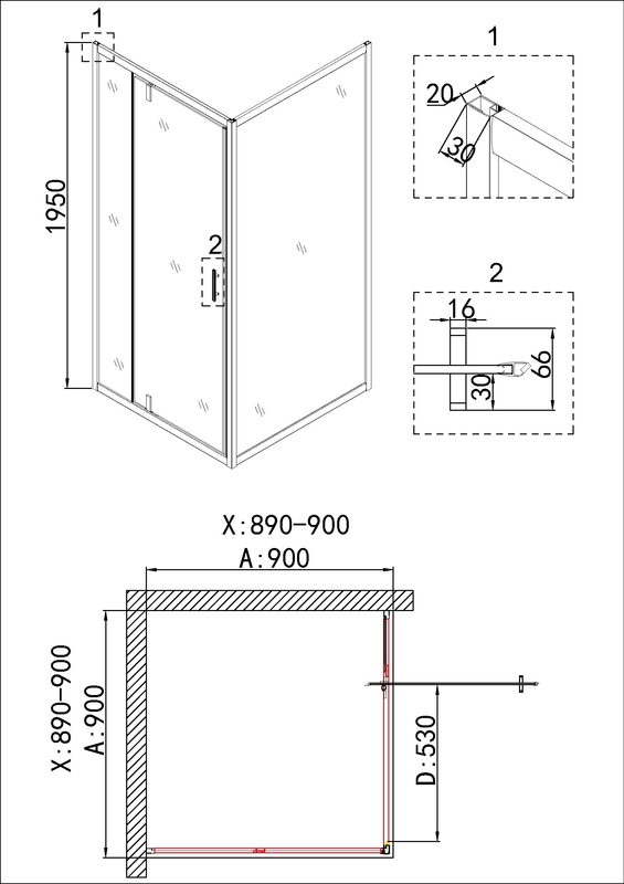 Душевое ограждение Niagara Nova NG-43-9AG-A90G (90х90х195) квадрат,золото,двери распашные,стекло прозрачное,2 места купить по низкой цене в интернет-магазине «ГЕБОСАН»