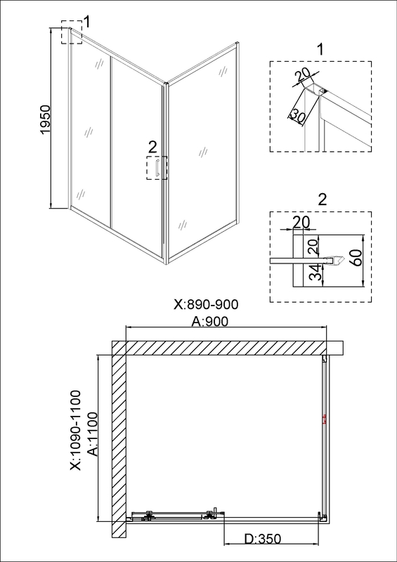 Душевое ограждение Niagara Nova NG-42-9AG-A110G (90х110х195) прямоугольник,золото,двери раздвижные,стекло прозрачное,2 места купить по низкой цене в интернет-магазине «ГЕБОСАН»