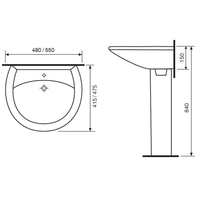 Умывальник"АТТИКА-48" с отверстием под смеситель
