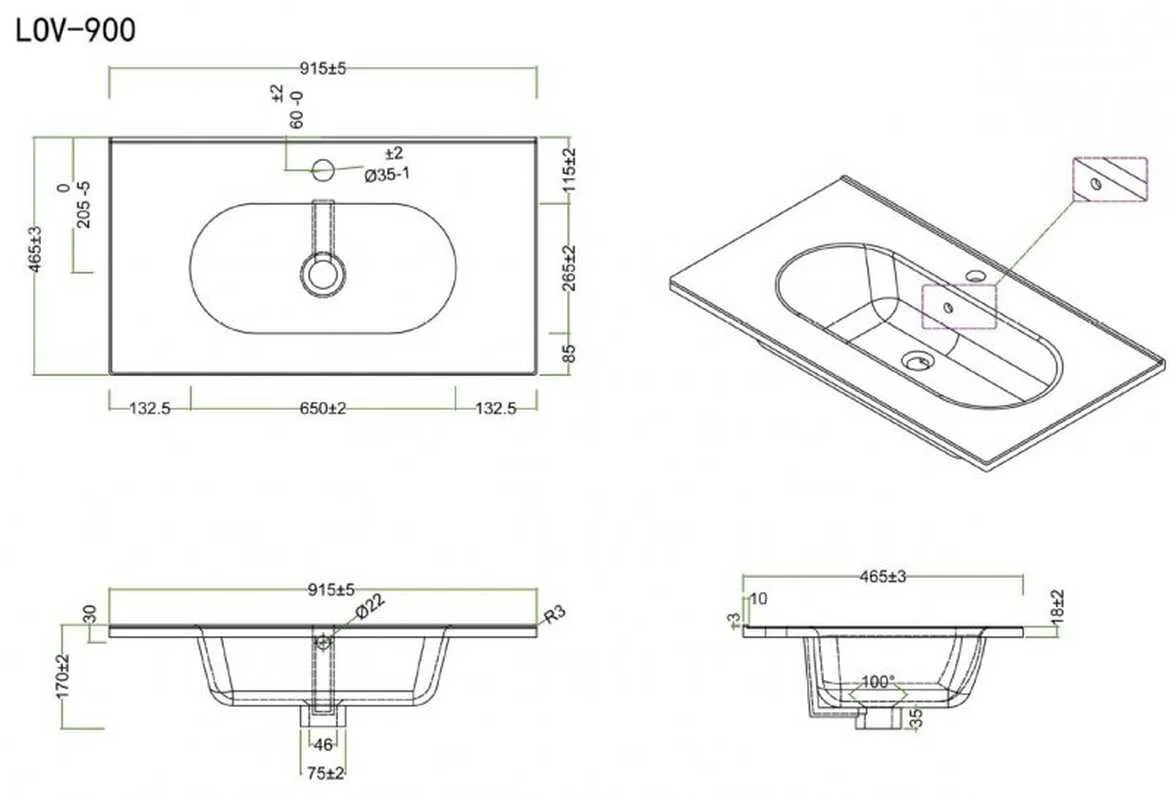Раковина керамическая BelBagno LOV-900-LVB, 91.5 x 46.5 x 17.5 см, белая