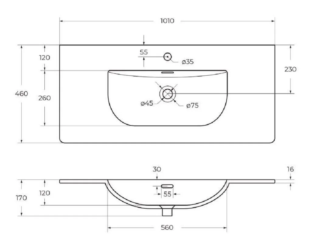 Раковина BelBagno Uno BB-8099-100, 101 см, керамика, белый