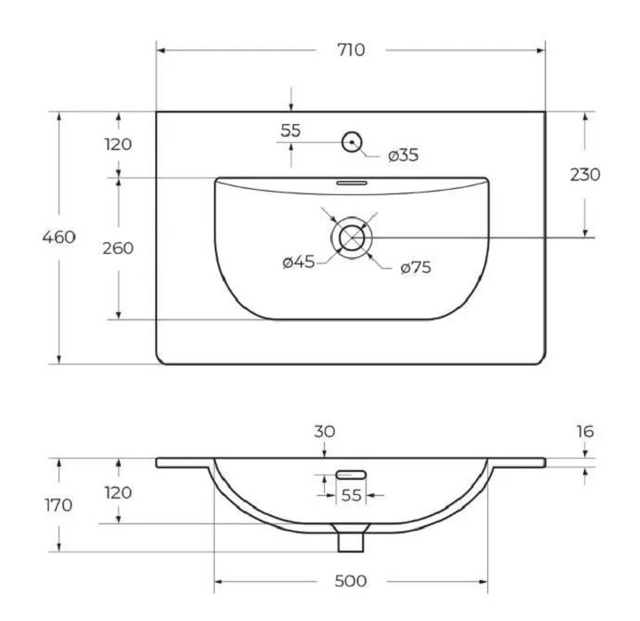 Раковина BelBagno Uno BB-8099-70, 71 см, керамика, белый