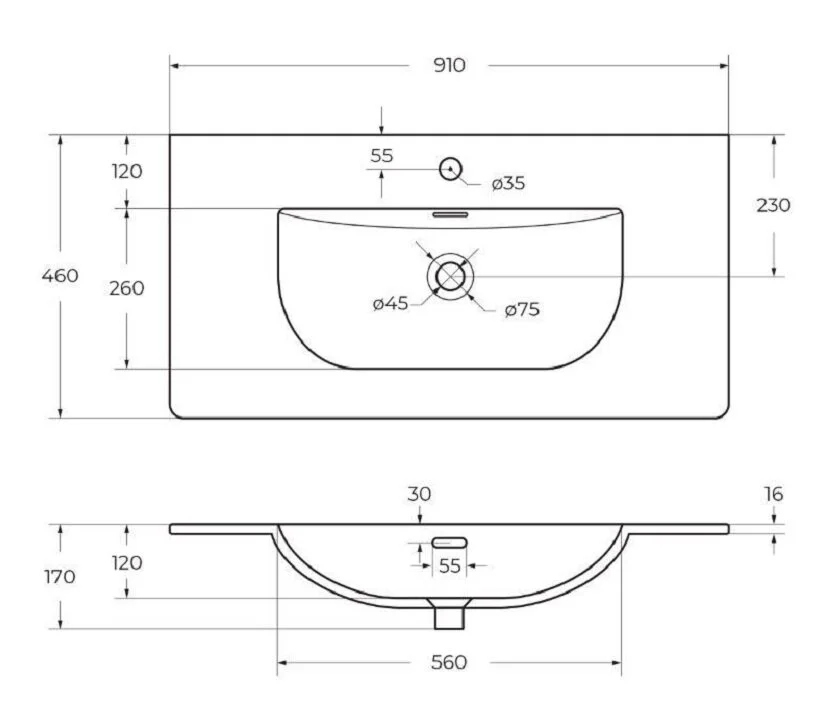 Раковина BelBagno Uno BB-8099-90, 91 см, керамика, белый