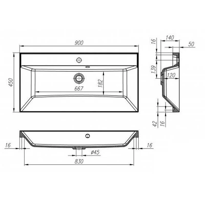 Раковина из искусственного камня BelBagno Aurora BB900/450-LV-ART-AST-NERO, 90 x 45 х 15 см, черный матовый