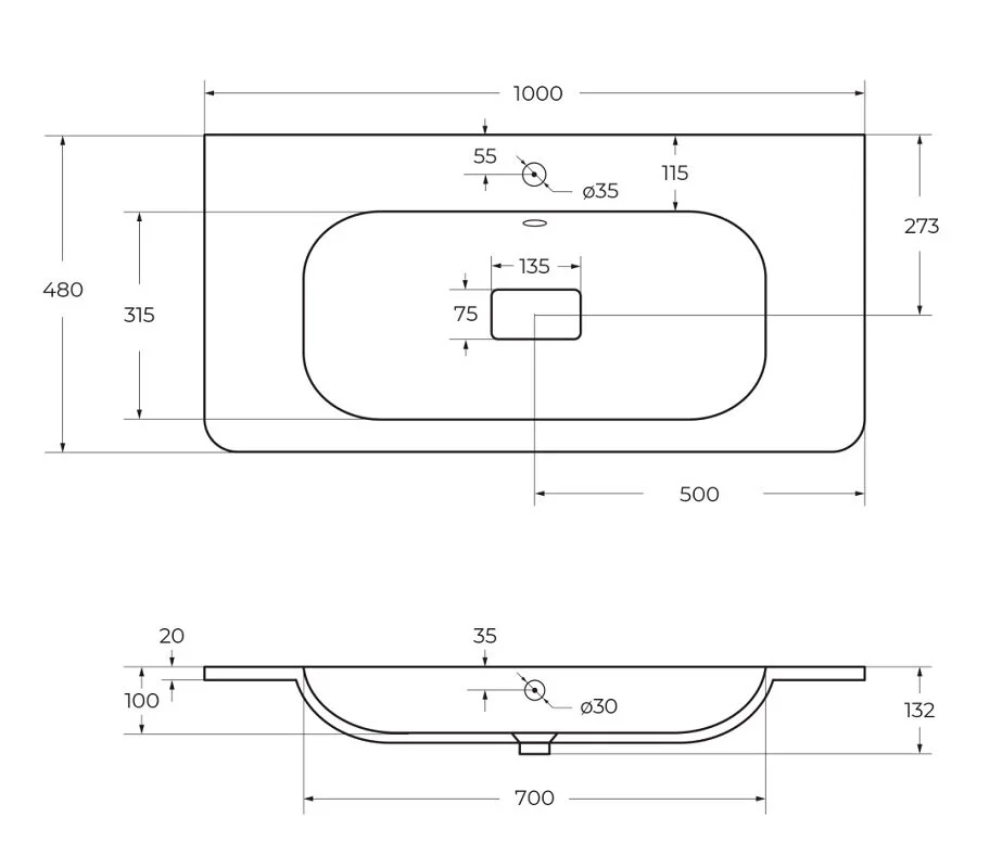 Раковина Cezares Relax CZR-1000/480-LV-MR-NV, 100 см, искусственный камень, белый