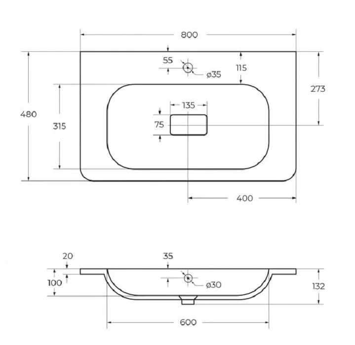 Раковина Cezares Relax CZR-800/480-LV-MR-NV, 80 см, искусственный камень, белый