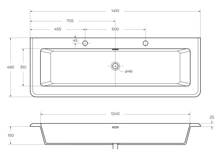 Раковина Cezares Solid Surface 50265, 140 см, искусственный камень, белый