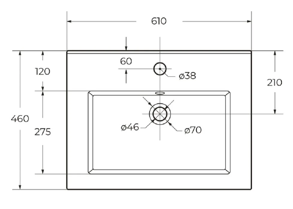 Раковина Cezares CZR-8070-60, 61 см, керамика, белый