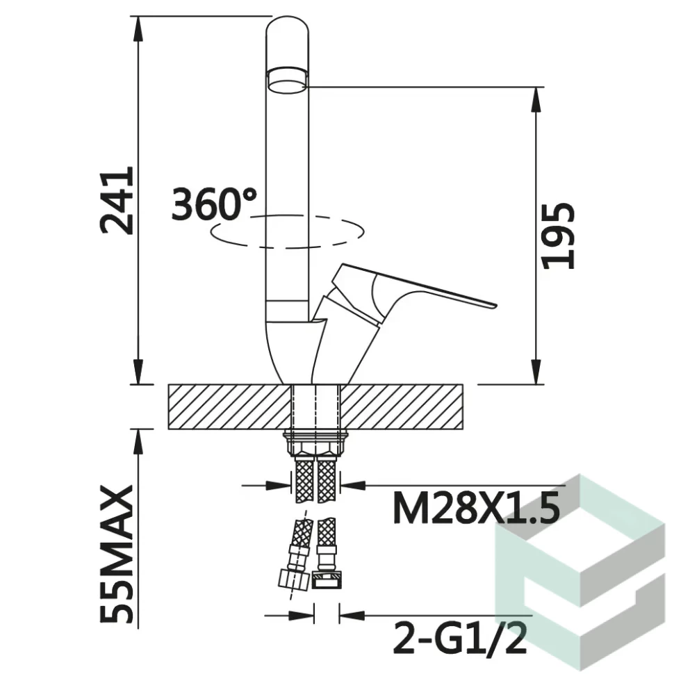 В комплекте: Запасной аэратор с ключом, подводка гибкая 50 см — 2 шт, гайка прижимная, комплект прокладок