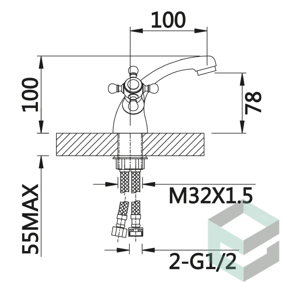 В комплекте: Запасной аэратор с ключом, подводка гибкая 50 см — 2 шт, гайка прижимная, комплект прокладок
