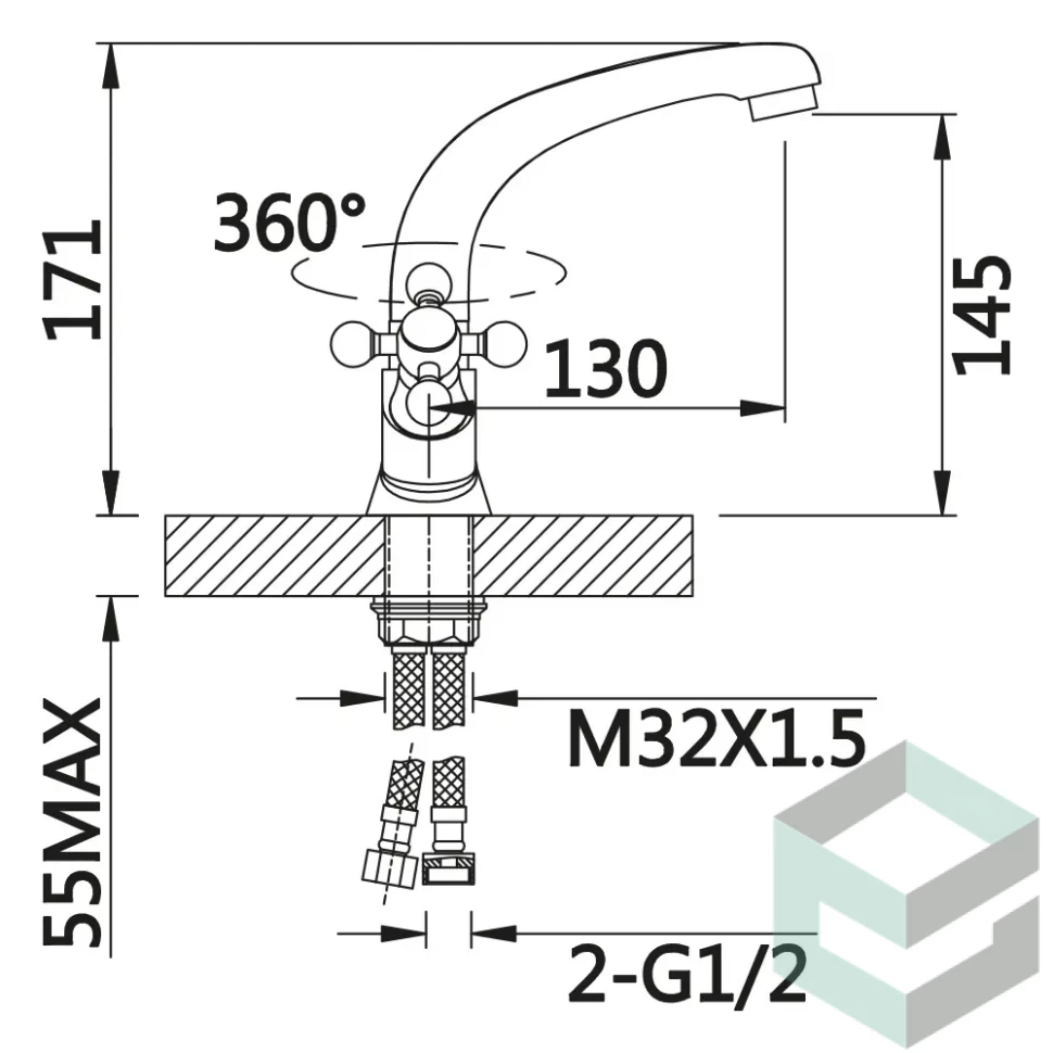 Описание: С двумя рукоятками, с поворотным изливом, короткий