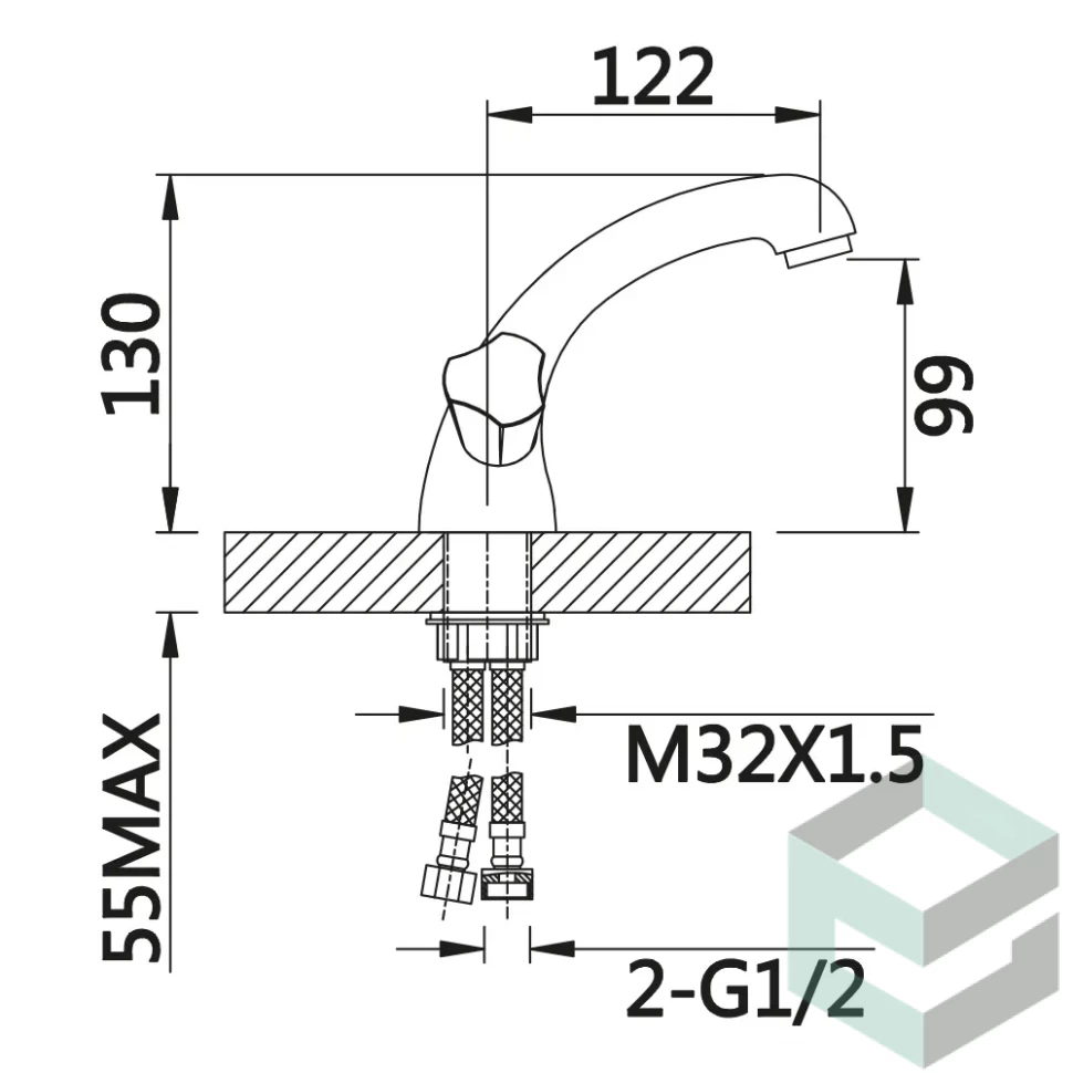 В комплекте: Запасной аэратор с ключом, подводка гибкая 50 см — 2 шт, гайка прижимная, резьбовое основание, комплект прокладок